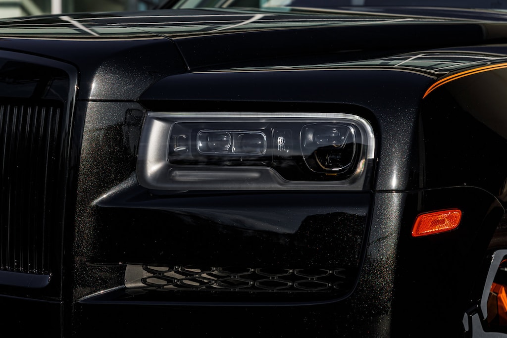 2024 Rolls-Royce Black Badge Cullinan presented by Rolls-Royce Motor Cars Orlando. Diamond Black with Mandarin interior, this Cullinan features Painted Brake Calipers in Mandarin, Uplit Spirit of Ecstasy in Dark ChromeFinish, Dark Exterior Package, Technical Carbon Treadplate Surround, Shooting Star Headliner, Black Badge technical Carbon Been Trim with Extended Veneer in High Gloss, Contrast Seat Piping and RR Monogram to Headrests in Black, Thicker Steering Wheel in Black, Lambswool Footmats in black, Spirit of Ecstasy embossed on doors, Rolls-Royce Bespoke Premium Audio System and Signature Key in Mandarin Leather.