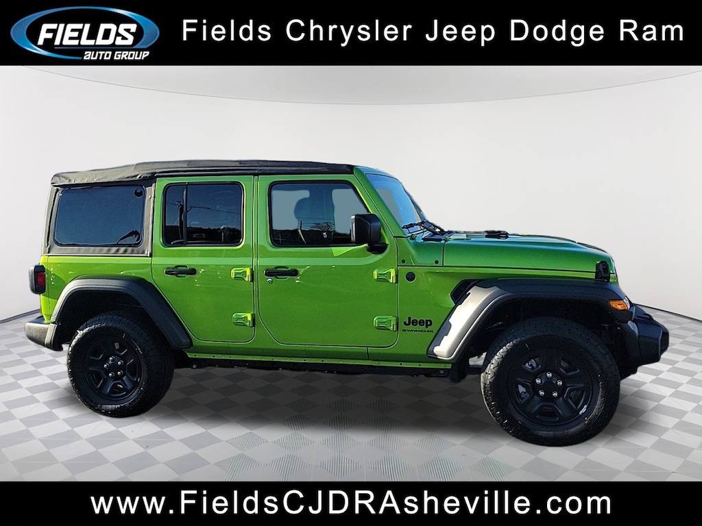 Chrysler Jeep Dodge Ram Asheville is pumped up to offer this outstanding-looking 2025 Jeep Wrangler Sport in Mojito Clearcoat Beautifully equipped with Quick Order Package 24B Sport, Trailer Tow & Aux Switch Group (7 & 4 Pin Wiring Harness, Auxiliary Switches, and Class II Receiver Hitch), 110 MPH Vehicle Max Speed Calibration, 3.45 Overall Top Gear Ratio, 4-Wheel Disc Brakes, 8 Speakers, ABS brakes, Air Conditioning, AM/FM radio: SiriusXM, Apple CarPlay/Android Auto, Aux Battery, Brake assist, Cloth Low-Back Bucket Seats, Compass, Deep Tint Sunscreen Windows, Delay-off headlights, Driver door bin, Driver vanity mirror, Dual front impact airbags, Dual front side impact airbags, Electronic Stability Control, Front anti-roll bar, Front Bucket Seats, Front Center Armrest w/Storage, Front fog lights, Front reading lights, Illuminated entry, Integrated roll-over protection, Low tire pressure warning, MOPAR All-Weather Floor Mats, MOPAR Satin Black Grille, Non-Lock Fuel Cap w/o Discriminator, Normal Duty Suspension, Occupant sensing airbag, Outside temperature display, Overhead airbag, Panic alarm, ParkView Rear Back-Up Camera, Passenger door bin, Passenger vanity mirror, Power steering, Power windows, Radio data system, Radio: Uconnect 5 w/12.3" Display, Rear anti-roll bar, Rear reading lights, Remote keyless entry, Speed control, Split folding rear seat, Steering wheel mounted audio controls, Stop-Start Dual Battery System, Tachometer, Telescoping steering wheel, Tilt steering wheel, Traction control, Trip computer, Variably intermittent wipers, and Wheels: 17" x 7.5" Black Steel Styled!
