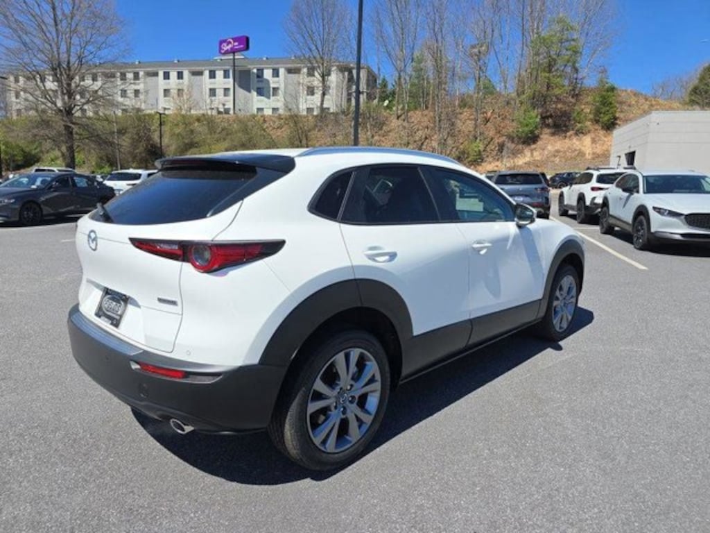 Snowflake White Pearl Mica 2026 Mazda CX-30 2.5 S Premium AWD 6-Speed Automatic SKYACTIV®-G 2.5L 4-Cylinder DOHC 16V 12 Speakers, 4-Wheel Disc Brakes, ABS brakes, Air Conditioning, Alloy wheels, AM/FM radio, AppLink/Apple CarPlay and Android Auto, Auto High-beam Headlights, Auto-dimming Rear-View mirror, Automatic temperature control, Brake assist, Bumpers: body-color, Cargo Cover, Cargo Tray, Compass, Delay-off headlights, Driver door bin, Driver vanity mirror, Dual front impact airbags, Dual front side impact airbags, Electronic Stability Control, Emergency communication system: MAZDA CONNECT, Exterior Parking Camera Rear, Front anti-roll bar, Front Bucket Seats, Front Center Armrest, Front dual zone A/C, Front reading lights, Front wheel independent suspension, Fully automatic headlights, Garage door transmitter: HomeLink, Heads-Up Display, Heated door mirrors, Heated Front Bucket Seats, Heated front seats, Heated steering wheel, High Wall All-Weather Floor Mats, Illuminated entry, Knee airbag, Leather Seat Trim, Leather Shift Knob, Leather steering wheel, Low tire pressure warning, MAZDA CONNECT Infotainment System, Memory seat, Occupant sensing airbag, Outside temperature display, Overhead airbag, Overhead console, Panic alarm, Passenger door bin, Passenger vanity mirror, Power door mirrors, Power driver seat, Power Liftgate, Power moonroof, Power steering, Power windows, Radio data system, Radio: AM/FM/HD Audio System, Rain sensing wipers, Rear seat center armrest, Rear side impact airbag, Rear window defroster, Rear window wiper, Remote keyless entry, Snowflake White Pearl Mica Paint Charge, Speed control, Speed-sensing steering, Split folding rear seat, Spoiler, Stainless Steel Rear Bumper Guard, Steering wheel mounted audio controls, Tachometer, Telescoping steering wheel, Tilt steering wheel, Traction control, Trip computer, Turn signal indicator mirrors, Variably intermittent wipers, Wheel Locks, Wheels: 18" x 7J Aluminum Alloy.