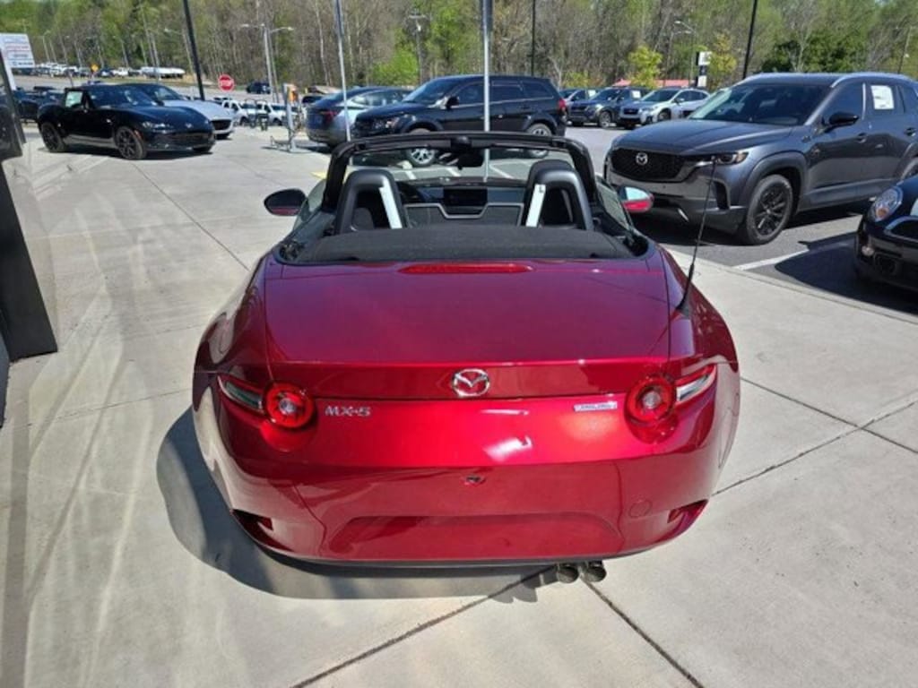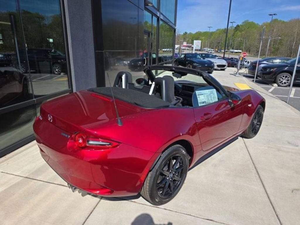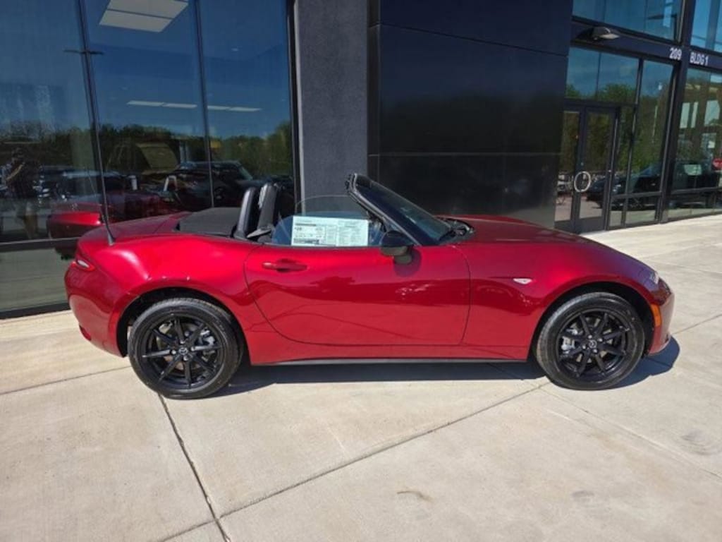 Soul Red Crystal Metallic 2026 Mazda MX-5 Miata Sport RWD 6-Speed Manual 2.0L 4-Cylinder DOHC 16V 4-Wheel Disc Brakes, 6 Speakers, ABS brakes, Air Conditioning, Alloy Pedals and Foot Rest, Alloy wheels, AM/FM radio, AppLink/Apple CarPlay and Android Auto, Brake assist, Bumpers: body-color, Cargo Net, Cloth Upholstery, Convertible roof wind blocker, Driver vanity mirror, Dual front impact airbags, Dual front side impact airbags, Electronic Stability Control, Emergency communication system: MAZDA CONNECT, Exterior Parking Camera Rear, Four wheel independent suspension, Front anti-roll bar, Front Bucket Seats, Front Center Armrest, Glass rear window, Illuminated entry, Interior Package, Leather Shift Knob, Low tire pressure warning, MAZDA CONNECT Infotainment System, Occupant sensing airbag, Outside temperature display, Panic alarm, Passenger vanity mirror, Power door mirrors, Power steering, Power windows, Radio data system, Radio: AM/FM Sound System, Rear anti-roll bar, Rear window defroster, Remote keyless entry, Soul Red Crystal Metallic Paint Charge, Speed control, Speed-sensing steering, Sport steering wheel, Stainless Steel Door Sill Trim Plates, Steering wheel mounted audio controls, Tachometer, Telescoping steering wheel, Tilt steering wheel, Traction control, Trip computer, Variably intermittent wipers, Wheel Locks, Wheels: 16" x 6.5" Aluminum Alloy with Black Metallic Finish.