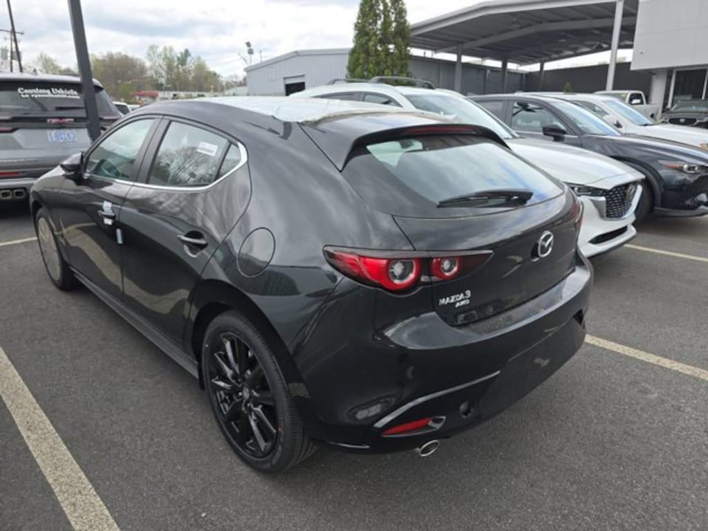 Jet Black Mica 2026 Mazda Mazda3 2.5 S Carbon Edition AWD 6-Speed Automatic SKYACTIV®-G 2.5L 4-Cylinder DOHC 16V 4-Wheel Disc Brakes, 8 Speakers, ABS brakes, Air Conditioning, Alloy wheels, AM/FM radio, Auto High-beam Headlights, Automatic temperature control, Brake assist, Bumpers: body-color, Compass, Delay-off headlights, Driver door bin, Driver vanity mirror, Dual front impact airbags, Dual front side impact airbags, Electronic Stability Control, Emergency communication system, Exterior Parking Camera Rear, Front anti-roll bar, Front Bucket Seats, Front Center Armrest, Front dual zone A/C, Front reading lights, Front wheel independent suspension, Fully automatic headlights, Heated door mirrors, Heated Front Bucket Seats, Heated front seats, Illuminated entry, Knee airbag, Leather Seat Trim, Leather Shift Knob, Leather steering wheel, Low tire pressure warning, MAZDA CONNECT Infotainment System, Memory seat, Occupant sensing airbag, Outside temperature display, Overhead airbag, Overhead console, Panic alarm, Passenger door bin, Passenger vanity mirror, Power door mirrors, Power driver seat, Power moonroof, Power steering, Power windows, Radio data system, Radio: AM/FM/HD Audio System, Rain sensing wipers, Rear seat center armrest, Rear side impact airbag, Rear window defroster, Rear window wiper, Remote keyless entry, Speed control, Speed-sensing steering, Split folding rear seat, Spoiler, Steering wheel mounted audio controls, Tachometer, Telescoping steering wheel, Tilt steering wheel, Traction control, Trip computer, Turn signal indicator mirrors, Variably intermittent wipers, Wheels: 18" x 7J Aluminum Alloy.