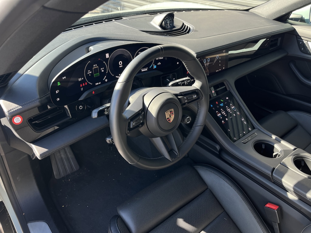 WHEELS: 20" TAYCAN TURBO S AERO DESIGN -inc: Tires: 245/45R20 Fr and 285/40R20 Rr, SURROUND VIEW W/ACTIVE PARKING SUPPORT, BOSE SURROUND SOUND SYSTEM, BRAKE CALIPERS IN HIGH GLOSS BLACK, INTERIOR ACCENTS IN EXTERIOR COLOR, SPORT CHRONO PACKAGE W/PUSH TO PASS (8LD), REAR 2+1 SEATS, PORSCHE INNODRIVE W/ACC & ALK, BLACK LEATHER SEAT TRIM, SHADE GREEN METALLIC, FRONT VENTILATED SEATS, OFF-ROAD DESIGN PACKAGE W/HIGH GLOSS BLACK INLAYS -inc: Off-road design cladding integrated into lower front fascia side skirts and rear diffusor increased ground clearance of 10mm (w/chassis at medium level) lower front fascia side skirts and rear diffusor inlays painted in high gloss black, UNDER DOOR PUDDLE LIGHT PROJECTORS, ROOF RAILS IN BLACK ALUMINUM FINISH, SOFT CLOSE DOORS, WHEEL CENTER CAPS W/COLORED PORSCHE CREST, ADVANCED 4-ZONE CLIMATE CONTROL, 14-WAY COMFORT SEATS W/COMFORT MEMORY, WINDOW TRIM IN HIGH GLOSS BLACK, Electric Motor, All Wheel Drive, Air Suspension, Active Suspension, Power Steering, Air Suspension, Air Suspension, ABS, 4-Wheel Disc Brakes, Brake Assist, Lithium Ion Traction Battery, Aluminum Wheels, Tires - Front Performance, Tires - Rear Performance, Wheel Locks, Sun/Moonroof, Generic Sun/Moonroof, Panoramic Roof, Heated Mirrors, Power Mirror(s), Power Folding Mirrors, Rear Defrost, Intermittent Wipers, Variable Speed Intermittent Wipers, Rain Sensing Wipers, Rear Spoiler, Remote Trunk Release, Power Liftgate, Power Door Locks, Daytime Running Lights, Automatic Headlights, Headlights-Auto-Leveling, LED Headlights, Automatic Highbeams, AM/FM Stereo, Navigation System, Satellite Radio, HD Radio, WiFi Hotspot, Smart Device Integration, Requires Subscription, MP3 Capability, Steering Wheel Audio Controls, Auxiliary Audio Input, Bluetooth Connection, Power Driver Seat, Power Passenger Seat, Bucket Seats, Mirror Memory, Seat Memory, Pass-Through Rear Seat, Bucket Seats, Adjustable Steering Wheel, Trip Computer, Power Windows, Leather Steering Wheel, Heated Steering Wheel, Keyless Entry, Power Door Locks, Keyless Start, Keyless Entry, Power Door Locks, Hands-Free Liftgate, Universal Garage Door Opener, Cruise Control, Climate Control, Multi-Zone A/C, A/C, Auto-Dimming Rearview Mirror, Driver Vanity Mirror, Passenger Vanity Mirror, Driver Illuminated Vanity Mirror, Passenger Illuminated Visor Mirror, Floor Mats, Mirror Memory, Seat Memory, Keyless Start, Power Windows, Power Door Locks, Trip Computer, Heated Front Seat(s), Security System, Immobilizer, Traction Control, Stability Control, Traction Control, Front Side Air Bag, Rear Parking Aid, Blind Spot Monitor, Cross-Traffic Alert, Lane Departure Warning, Lane Keeping Assist, Lane Departure Warning, Front Collision Mitigation, Tire Pressure Monitor, Driver Air Bag, Passenger Air Bag, Front Head Air Bag, Rear Head Air Bag, Passenger Air Bag Sensor, Front Side Air Bag, Rear Side Air Bag, Knee Air Bag, Child Safety Locks, Back-Up Camera
