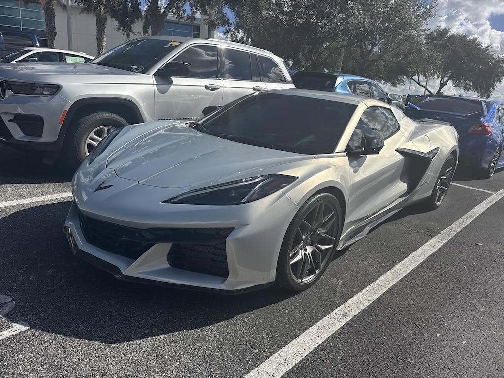 AUDIO SYSTEM, CHEVROLET INFOTAINMENT 3 PREMIUM SYSTEM WITH CONNECTED NAVIGATION 8 diagonal HD color touchscreen, AM/FM stereo, Bluetooth® audio streaming for 2 active devices, Apple CarPlay® and Android Auto® capable, enhanced voice recognition, additional memory for in-vehicle apps, cloud connected personalization for select infotainment and vehicle settings. (STD), ENGINE, 5.5L V8 DI, HIGH-OUTPUT Variable Valve Timing (VVT), (670 hp [499.6 kW] @ 8400 rpm, 460 lb-ft of torque [623.8 N-m] @ 6300 rpm) (STD), TRANSMISSION, 8-SPEED DUAL CLUTCH, INCLUDES MANUAL AND AUTO MODES (STD). Chevrolet 3LZ with Silver Flare Metallic exterior and Adrenaline Red interior features a 8 Cylinder Engine with 670 HP at 8400 RPM*.