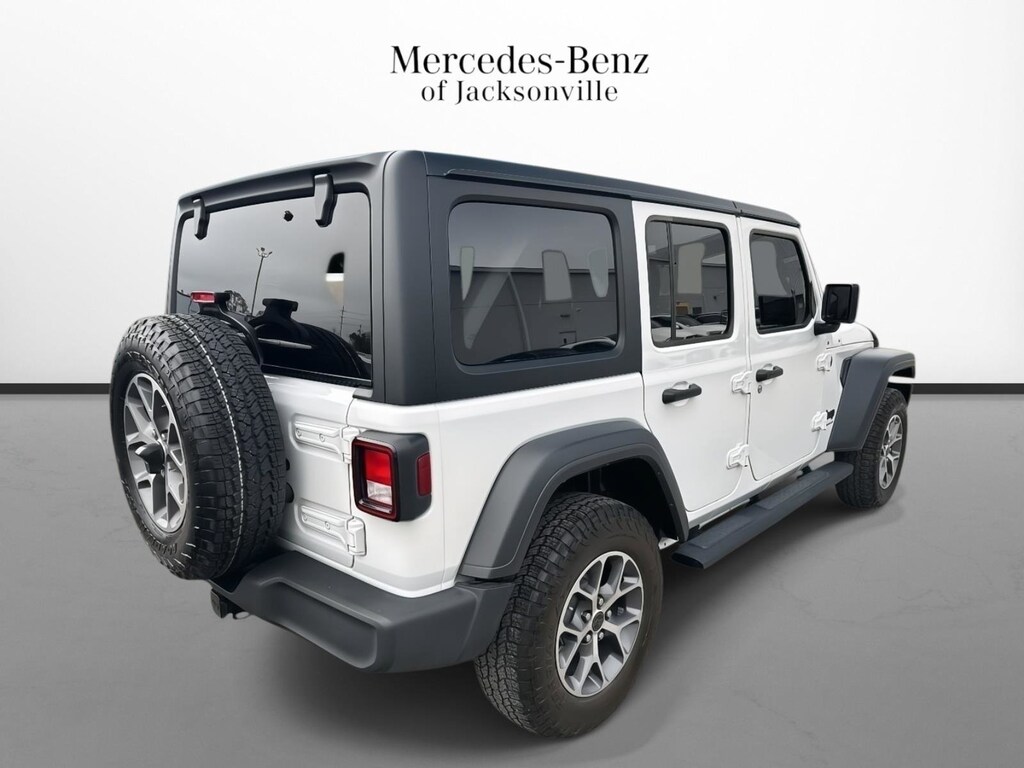 BLUETOOTH Bluetooth is a registered mark of Bluetooth SIG, Inc, BACKUP CAMERA, POWER PACKAGE - POWER WINDOWS AND DOOR LOCKS DUAL POWER SEAT, APPLE CARPLAY ANDROID CAR, ALLOY WHEELS, SOUND PACKAGE - SIRIUS XM SATELLITE RADIO, MERCEDES ME CONNECT. Convenience Group (2-Door Passive Entry, Front Door Locks, Air Conditioning w/Auto Temperature Control, Air Filtering, Cluster 7.0" TFT Color Display, Emergency/Assistance Call, Heated Front Seats, Heated Steering Wheel, Remote Start System, and Universal Garage Door Opener), Quick Order Package 22S Sport S (Advanced Brake Assist, Automatic Headlamps, Corning Gorilla Glass, Deep Tint Sunscreen Windows, Enhanced Adaptive Cruise Control, Front 1-Touch Down Power Windows, Full Speed Forward Collision Warning Plus, Power Heated Mirrors, Premium Wrapped Steering Wheel, Remote Keyless Entry, Security Alarm, Speed Sensitive Power Locks, Sport S, Sun Visors w/Illuminated Vanity Mirrors, and Wheels: 17" x 7.5" Gray), Trailer Tow & Aux Switch Group (240 Amp Alternator, 7 & 4 Pin Wiring Harness, Auxiliary Switches, and Class II Receiver Hitch), 110 MPH Vehicle Max Speed Calibration, 3.45 Overall Top Gear Ratio, 4-Wheel Disc Brakes, 8 Speakers, ABS brakes, Air Conditioning, AM/FM radio, Apple CarPlay/Android Auto, Aux Battery, Black 3-Piece Hard Top, Brake assist, Cloth Low-Back Bucket Seats, Compass, Delay-off headlights, Driver door bin, Driver vanity mirror, Dual front impact airbags, Dual front side impact airbags, Electronic Stability Control, Freedom Panel Storage Bag, Front anti-roll bar, Front Bucket Seats, Front Center Armrest w/Storage, Front fog lights, Front reading lights, Integrated roll-over protection, Jeep Trail Rated Kit, Low tire pressure warning, MOPAR All-Weather Floor Mats, Mopar Black Tubular Side Steps, No Soft Top, Non-Lock Fuel Cap w/o Discriminator, Normal Duty Suspension, Occupant sensing airbag, Outside temperature display, Overhead airbag, ParkView Rear Back-Up Camera, Passenger door bin, Passenger vanity mirror, Power steering, Radio data system, Radio: Uconnect 5 w/12.3" Display, Rear anti-roll bar, Rear reading lights, Rear Window Defroster, Rear Window Wiper/Washer, Speed control, Split folding rear seat, Steering wheel mounted audio controls, Stop-Start Dual Battery System, Tachometer, Telescoping steering wheel, Tilt steering wheel, Traction control, Trip computer, Variably intermittent wipers, Wheels: 17" x 7.5" Black Steel Styled, and Wheels: 17" x 7.5" Machined w/Black Pockets.