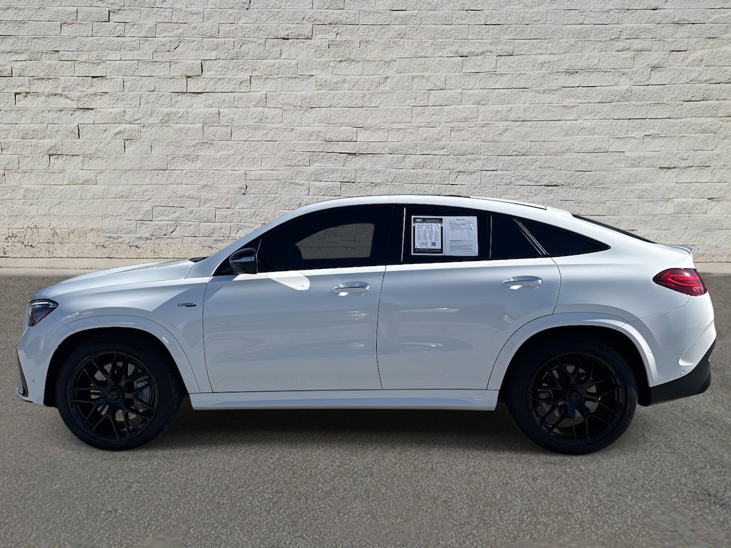 GLE GLE 53 AMG® 4MATIC®, 4D Coupe, 3.0L I6 Turbo, 9-Speed Automatic, 4MATIC®, Polar White, Black Leather, 13 Speakers, 21" AMG® Twin 5-Spoke Wheels, Adaptive suspension, Air Conditioning, AM/FM radio: SiriusXM, Anti-whiplash front head restraints, Apple CarPlay®/Android Auto®, Auto High-beam Headlights, Auto tilt-away steering wheel, Auto-dimming door mirrors, Auto-dimming Rear-View mirror, Auto-leveling suspension, Automatic temperature control, Brake assist, Brushed Aluminum Trim, Bumpers: body-color, Child-Seat-Sensing Airbag, Compass, Delay-off headlights, Driver door bin, Driver vanity mirror, Dual front impact airbags, Dual front side impact airbags, Electronic Stability Control, Emergency communication system: eCall Emergency System, Four wheel independent suspension, Front anti-roll bar, Front Bucket Seats, Front Center Armrest, Front dual zone A/C, Front reading lights, Fully automatic headlights, Garage door transmitter: HomeLink, Heated and Ventilated Power Front Seats with Driver Memory, Heated door mirrors, Heated front seats, Illuminated entry, Knee airbag, Leather steering wheel, Low tire pressure warning, Memory seat, Nappa Leather Dashboard and Door Panels, Nappa Leather Upholstery, Navigation system: MBUX, Occupant sensing airbag, Outside temperature display, Overhead airbag, Panic alarm, Passenger vanity mirror, Power adjustable front head restraints, Power door mirrors, Power driver seat, Power Liftgate, Power moonroof: Panorama, Power passenger seat, Power steering, Power windows, Premium audio system: MBUX, Radio data system, Radio: 12.3" Media Display with Touchscreen, Rain sensing wipers, Rapid Heating Front Seats, Rear anti-roll bar, Rear reading lights, Rear seat center armrest, Rear window defroster, Security system, Speed control, Speed-sensing steering, Speed-Sensitive Wipers, Split folding rear seat, Spoiler, Steering wheel memory, Steering wheel mounted audio controls, Tachometer, Telescoping steering wheel, Traction control, Turn signal indicator mirrors, Ventilated front seats, Weather band radio.