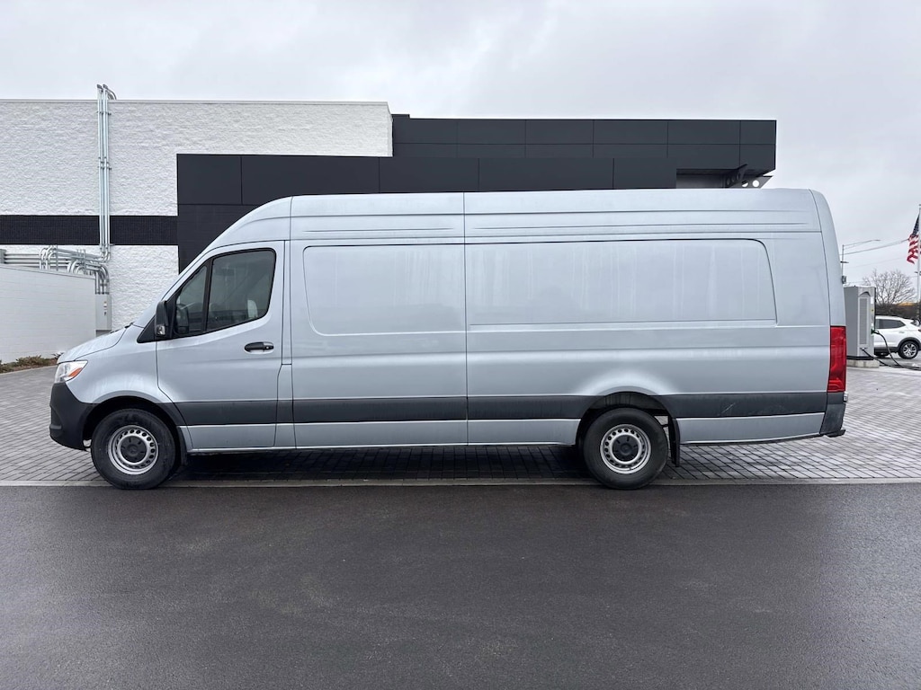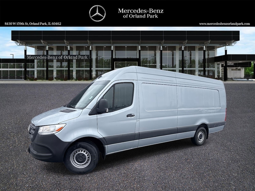 Hightech Silver 2025 Mercedes-Benz Sprinter 2500 Cargo 170 WB Extended RWD 9-Speed Automatic 2.0L 4-Cylinder Diesel Turbocharged DOHC 4-Wheel Disc Brakes, 5 Speakers, ABS brakes, AM/FM radio, Armrest for Driver's Seat, Armrest for Front Passenger's Seat, Assist Handle w/Partition, Blind Spot Assist, Brake assist, Cargo Partition, Door-Mounted Assist Handles, Driver & Passenger, Driver door bin, Driver's Seat Mounted Armrest, Dual front impact airbags, Dual front side impact airbags, Electrically Folding Exterior Mirrors, Electronic Stability Control, Emergency communication system, Front anti-roll bar, Front Bucket Seats, Front wheel independent suspension, Grey Rear Bumper Step, Heated Driver's Seat, Heated front seats, Illuminated entry, Low tire pressure warning, Maturin Fabric Upholstery, No Factory Installed Flooring, Outside temperature display, Overhead airbag, Overhead console, Passenger seat mounted armrest, Power steering, Power windows, Radio: Standard, Remote keyless entry, Sideguard Assist, Standard Driver Seat, Standard Front Passenger Seat, Tachometer, Tilt steering wheel, Traction control, Twin Front Passenger Seat, Wood Floor w/6 D-Rings.