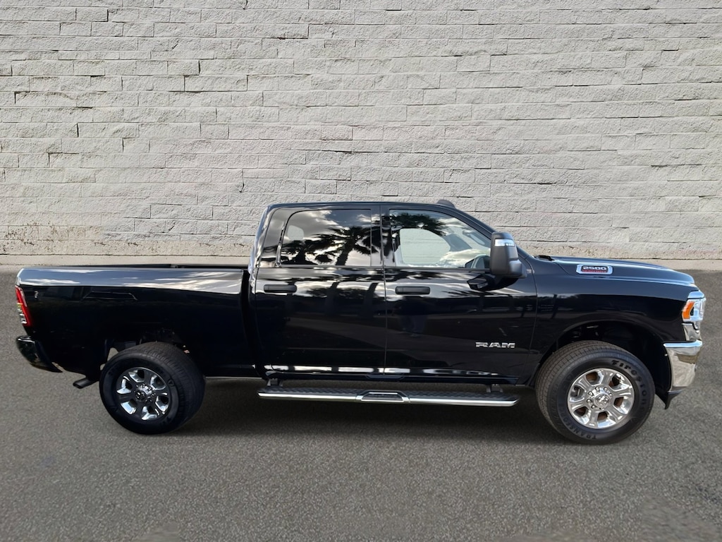 CARFAX One-Owner. Diamond Black Crystal Pearlcoat 2024 Ram 2500 Big Horn 4WD 8-Speed Automatic 6.4L V8 2500 Big Horn, 4D Crew Cab, 6.4L V8, 8-Speed Automatic, 4WD, Diamond Black Crystal Pearlcoat, Diesel Gray/Black Cloth, 2 Way Rear Headrest Seat, 2nd Row In Floor Storage Bins, 4 Way Front Headrests, 40/20/40 Split Bench Seat, 4G LTE Wi-Fi Hot Spot, 8.4" Touchscreen Display, Apple CarPlay, Auto Power-Folding Mirrors, Big Horn IP Badge, Black Exterior Mirrors, Bluetooth Handsfree Phone & Audio, Center Hub, Connectivity - US/Canada, Dual Glove Boxes, Exterior Mirrors Courtesy Lamps, Exterior Mirrors w/Heating Element, Exterior Mirrors w/Supplemental Signals, Foam Bottle Insert (Door Trim Panel), Footwell Courtesy Lamp, For Details, Visit DriveUconnect.com, For More Info, Call 800-643-2112, Forward & Reverse Utility Lights, Front Armrest w/Cupholders, Front Center Seat Cushion Storage, Front Fog Lamps, Front Seat Back Map Pockets, Global Telematics Box Module (TBM), Glove Box Lamp, Google Android Auto, GPS Antenna Input, Integrated Center Stack Radio, Integrated Voice Command w/Bluetooth, Leather Wrapped Steering Wheel, Level 1 Equipment Group, Locking Lower Glove Box, Manual Adjust 4-Way Front Passenger Seat, Mirror Running Lights, Power 2-Way Driver Lumbar Adjust, Power Adjust 8-Way Driver Seat, Power Adjust Mirrors, Power Adjustable Convex Aux Mirrors, Power Heated Fold Telescope Mirrors, Power Telescoping Mirrors, Premium Cloth 40/20/40 Bench Seat, Quick Order Package 2GZ Big Horn, Radio: Uconnect 5 W w/8.4" Display (A62), Rear 60/40 Folding Seat, Rear Dome w/On/Off Switch Lamp, Remote USB Port - Charge Only, Selectable Tire Fill Alert, SiriusXM Radio Service, SiriusXM Satellite Radio, Steering Wheel Mounted Audio Controls, Storage Tray, Wheels: 18" x 8.0" Polished Aluminum.