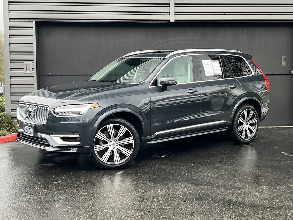 This **2022 Volvo XC90 T6 AWD Inscription** blends Scandinavian luxury with family-focused versatility, elevated by the premium Inscription trim and a long list of factory-installed upgrades. Power comes from a **316-hp supercharged and turbocharged 2.0L engine** paired with an **8-speed Geartronic automatic** and **all-wheel drive with Instant Traction**, giving you confident year-round performance for every PNW season. Inside, the Inscription package delivers true flagship refinement with **Nappa Leather Upholstery**, **ventilated front seats**, **power lumbar with memory**, **power cushion extension**, **tailored dashboard and door panels**, **wood decor inlays**, and **Interior High-Level Illumination**. Comfort and usability are exceptional thanks to **7-passenger seating**, a **panoramic moonroof**, **4-zone climate control with CleanZone**, **Harman Kardon premium sound**, **Sensus Navigation Pro**, **keyless entry/drive**, and **integrated roof rails**. This model is also equipped with the **Climate Package** (heated rear seats, heated steering wheel, headlight high-pressure cleaning) and the **Advanced Package** (360 Surround View Camera, Graphical Head-Up Display, and Advanced Air Cleaner), along with desirable add-ons including a **luggage cover**, **eyeglass holder**, **Protection Package**, **integrated center booster seat**, and striking **21" 8-Multi Spoke Alloy Wheels**. As always with Volvo, safety is exceptional, featuring Pilot Assist with Adaptive Cruise Control, Blind Spot with Steer Assist, Collision Avoidance with pedestrian/cyclist/large-animal detection, Run-off Road Mitigation, Lane Keeping Aid, and a full suite of airbags and driver-assistance technology. This XC90 brings luxury, capability, and space together in a package tailor-made for PNW families and their adventures.